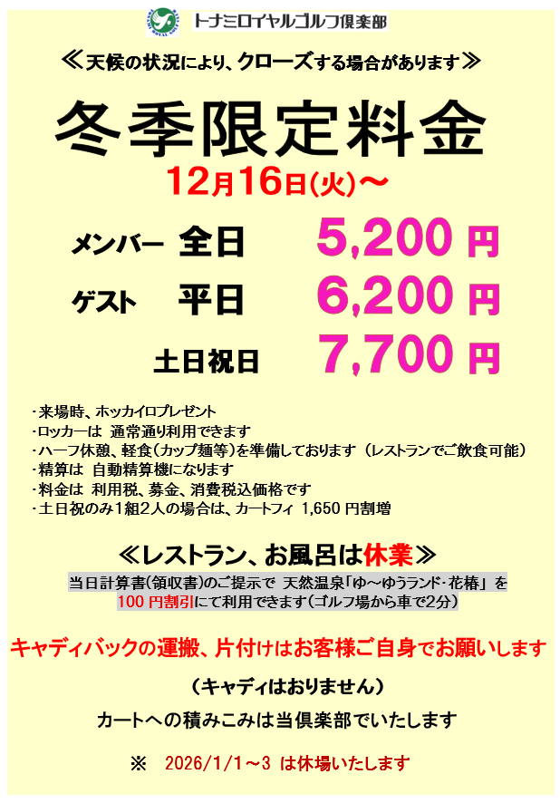 12/16(火)より 料金値下げします
