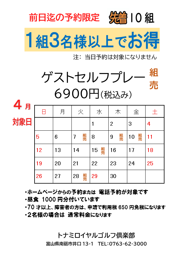 1組3名 ゲスト様 6,900円プラン