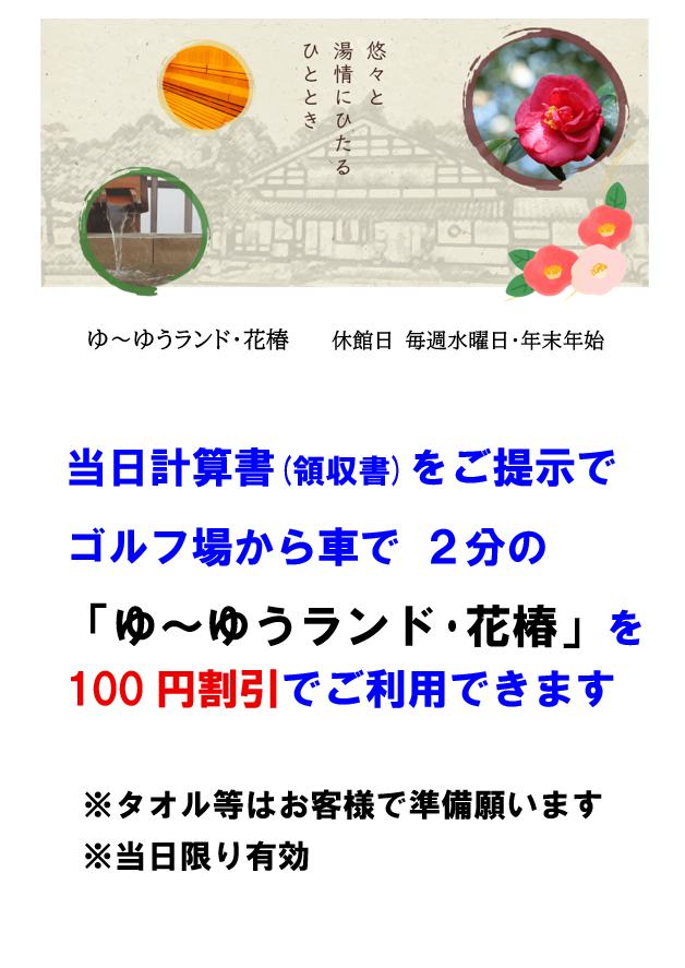【ゆ~ゆうランド・花椿】入浴料割引のお知らせ